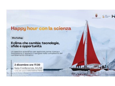 Elena Tomasi e Luca Bergamasco di FBK intervengono all’aperitivo scientifico promosso da HIT, insieme a ricercatori, professionisti ed esperti, per approfondire il tema del cambiamento climatico attraverso il contributo concreto della ricerca e dell’innovazione trentina.