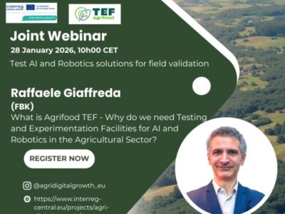 Nel webinar congiunto Agridigital Growth - Agrifood Tef, Raffaele Giaffreda, FBK e AgrifoodTEF Coordinator presenterà le strutture di test e sperimentazione che agrifoodTEF può mettere a disposizione degli innovatori nel settore agricolo.