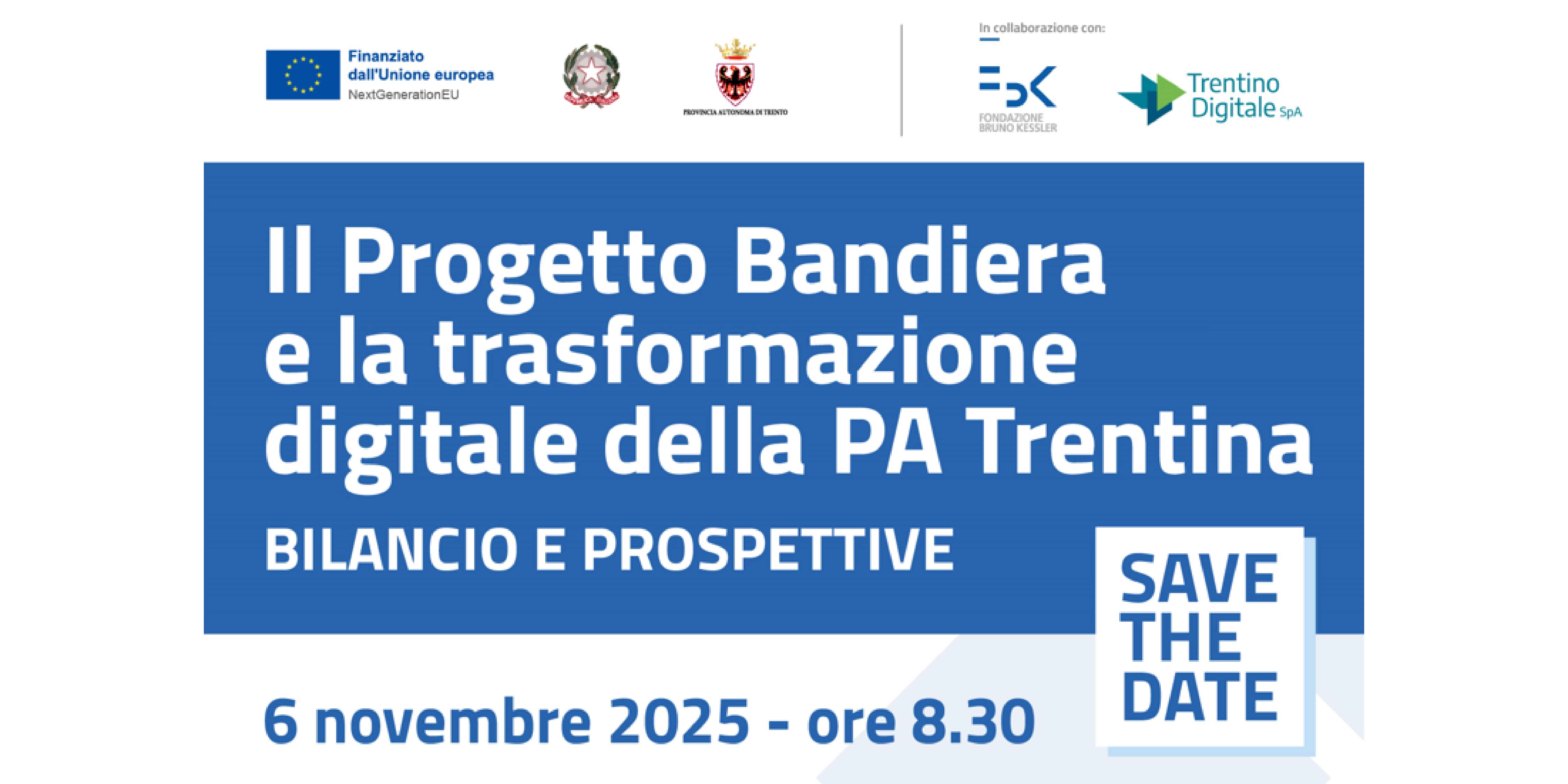 | L’appuntamento, intitolato “Il Progetto Bandiera e la trasformazione digitale della PA trentina: bilancio e prospettive”, è per giovedì 6 novembre a partire dalle ore 8.30 nella Sala Depero del Palazzo della Provincia autonoma di Trento.